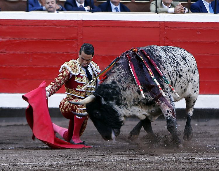 José Mari Manzanares touche le premier de Toros de Cortés. Le matador le passe en véroniques et demie aisées et de belle facture. Le bicho pousse brièvement tête relevée et sort seul de la première pique. Il prend la seconde en parallèle au peto avant une vuelta de campana valant puyazo. La lidia de Daniel Duarte au second tiers révèle des charges longues et profondes. La confiance de J.M. Manzanares est visible dès le tanteo. L'animal prompt, charge de loin et va loin. Les derechazos dans le style maison, lointains et esthétiques, provoquent les applaudissements, puis les olés et ovations d'un public conquis. Sur la corne gauche le toro de Cortés poursuit sa parfaite collaboration en "humiliant" sans retenue. Seul lui manque l'étincelle. La dernière série droitière est somptueuse dans le remate par changement de main et passe de poitrine. Une série d'adorno pour aligner le toro est suivie d'une estocade a recibir, tombée, d'effet rapide. Oreille.
