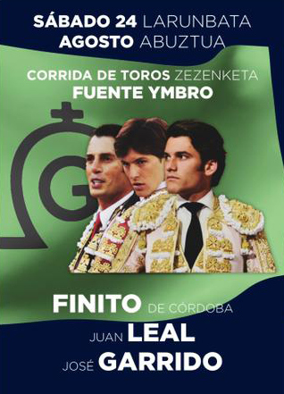 L’avant dernière corrida de Aste Nagusia annonçait des toros de Fuente Ymbro pour un cartel de matadors avec en tête Juan Serrano « Finito de Córdoba » suivi de l’Arlésien Juan Leal et l’Extremeño José Garrido. Affiche atypique, s’il en est, qui n’avait attiré qu’un tiers d’arène. Du vétéran « Finito », on n’attendait pas grand-chose sauf des détails de torería. Juan Leal commence à faire valoir, en Espagne, des qualités occultées avec des toros qui ne lui donnaient peu de chance de briller si ce n’est au prix de cogidas ou étalage de vaillance souvent excessive. Les toros de cet après-midi lui permettaient d’allier un bon et varié toreo avec des attitudes parfois téméraires.