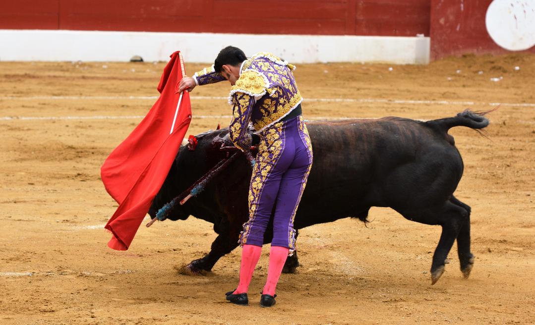 Ginés Marín se rachetait au 6ème, au corps ramassé, qui ne prenait pas très bien la cape, véroniques courtes ou en delantal, pendant lesquelles apparaissait sa faiblesse aussi bien du train avant que celui arrière, ce qui ne laissait augurer rien de bon. Le tercio de varas était escamoté et seule la volonté et le placement de Ginés Marín faisaient le reste de telle sorte que « Arrujado » d’abord toréé en tanteo par le haut, répondait aux cites et mettait la tête, parfois à la limite de la perte d’équilibre, mais on oubliait ce risque pour s’attacher au travail appliqué et sérieux de Ginés Marín, qui réussissait à lier les naturelles avec pour remate la passe du «mépris» - pase del desprecio - du meilleur effet. Les bernadinas finales en changeant le voyage du bicho au dernier moment finissaient par conquérir le public qui demandait l’oreille après une estocade entière arrière. A son premier, malgré des tentatives répétées de construire la faena, face à l’inconsistance de ce toro, il fallait en finir. L’estocade tombée provoquait l’hémorragie buccale…