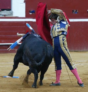 Au contraire du pase de farol exécuté avec la cape, le farol de muleta est réalisé à une main indistinctement de la main droite ou gauche en un adorno pour conclure une série de passes lié habituellement à une passe de poitrine Comme avec la cape, le torero fait passer la muleta au-dessus de la tête en effectuant une rotation du corps dans le sens inverse à la trajectoire du toro pour enchaîner une nouvelle passe.