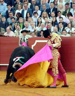 C'est la passe fondamentale du toreo de cape. Elle s’exécute indistinctement du côté droit ou gauche. La main de sortie est dirigée dans la direction souhaitée pour donner la sortie au toro. L’autre main étant au plus près du corps du torero. La passe peut s'exécuter soit en avançant la jambe de sortie, en «chargeant la suerte», soit pieds joints (à ne pas confondre avec le delantal). La véronique consiste à déployer la cape et à embarquer le toro dans un mouvement latéral pour le conduire avec mesure et temple selon les recours techniques ou dons artistiques du torero. Cette passe est attribuée à Joaquín Rodríguez «Costillares» (1748-1800) qui, en réalité, en a fixé les règles ou perfectionné son exécution comme successivement l’ont fait José Delgado «Pepe Hillo» (1754-1801), Francisco Montés «Paquiro» (1805-1851) et plus tard Rafael Guerra «Guerrita» (1862-1941).