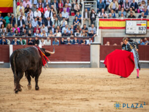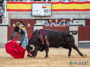 Le premier de Román a des allures de bœuf très armé. Il freine dans la cape du matador avant de fuir. Son attitude nonchalante oblige Román à bregar sans possibilité de toreo de cape profond. La mansedumbre sous-jacente s’exprime en bagarre sous les piques avec des fuites finales. Brindis au public. Au centre Román appelle le toro qui vient, passe et s’en va. Le matador l’attend et lorsqu’il charge, il l’enroule à droite dans une série en effectuant un pas vers la trajectoire en sortie de passe et en citant de face. Il répète l’exercice, fort efficacement, en laissant du temps entre les séries et en citant de loin. La troisiéme série, servie selon les mêmes principes, met en