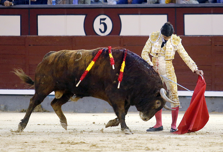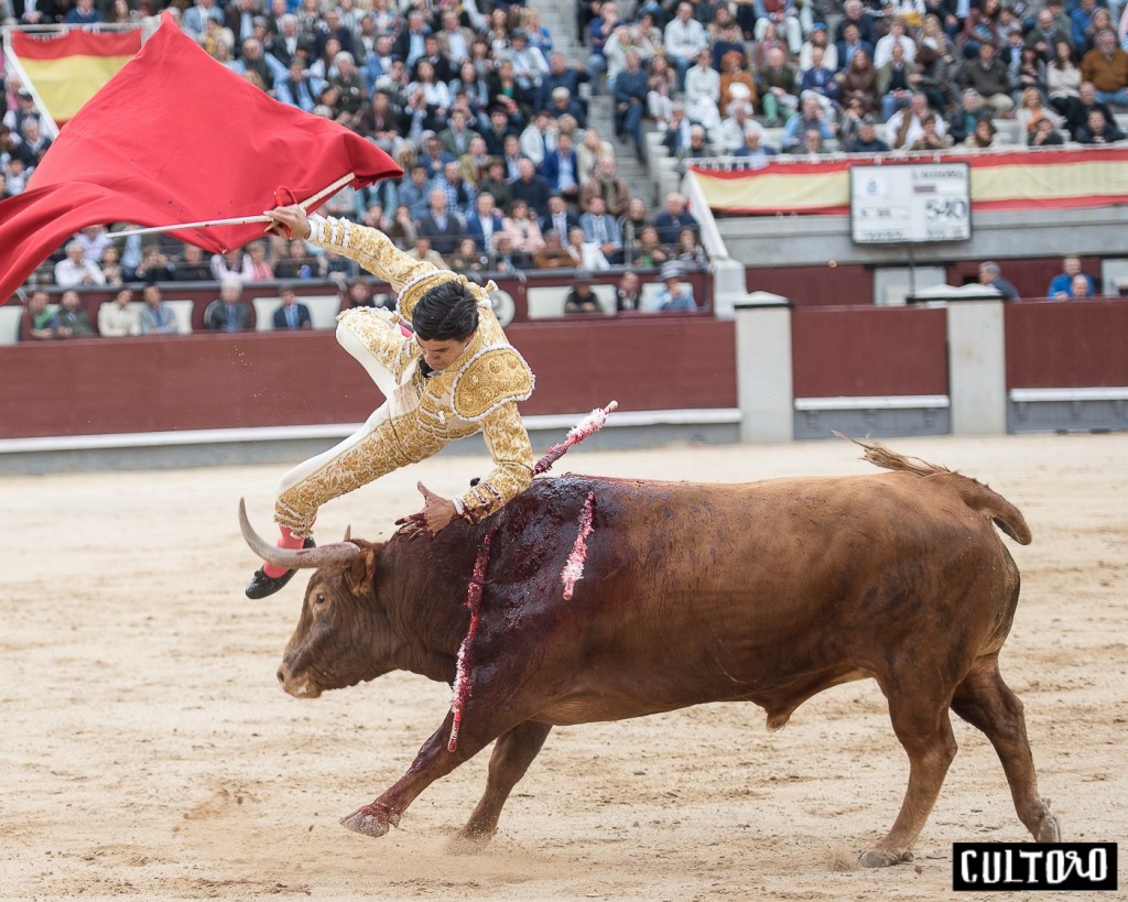 Le toreo à gauche est somptueux avec les vuelos, les toques précis.  Final par naturelles de troisquarts, réalisées une par une. Pendant toute la faena Las Ventas a alterné entre un silence d'absolue attention et le rugissement des olés de la pleine communion.  Une horrible épée contraire dans le flanc, puis pinchazos annihilent toute chance de trophée.