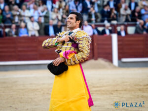 Alors qu’une bagarre commence sur les gradins du 7, Tomás Rufo entreprend un exemplaire de belle prestance qu’il a du mal à mettre dans sa cape. La charge désinvolte n’y est pas propice. Le toro fait sonner l’étrier. Rufo tente un quite par delantales dans lequel il est débordé. Au second passage aux piques le bicho combat par à-coups. Fernando Sánchez réveille la plaza avec une grande prestation de poder a poder en banderilles pour laquelle il salut. Rufo va aux tercios et reçoit la première charge à genoux. Le toro fait un écart et trébuche brusquement. Immédiatement après il charge lentement, au pas, dans la muleta du matador tenue avec aguante. Il semble que le bicho ait été affecté par son écart. Dans la série suivante le toro montre des signes de perte de coordination. Rufo gère mais les séries n’ont pas l’intensité qu’elles auraient avec une charge longue et profonde comme le laissait entrevoir le second tiers. À gauche le matador doit gérer des derrotes ce qu’il parvient à faire dans quelques naturelles. Le toro finit par rajarse. Rufo insiste en tablas sans solution. Plusieurs pinchazos, avis et descabello. Silence.