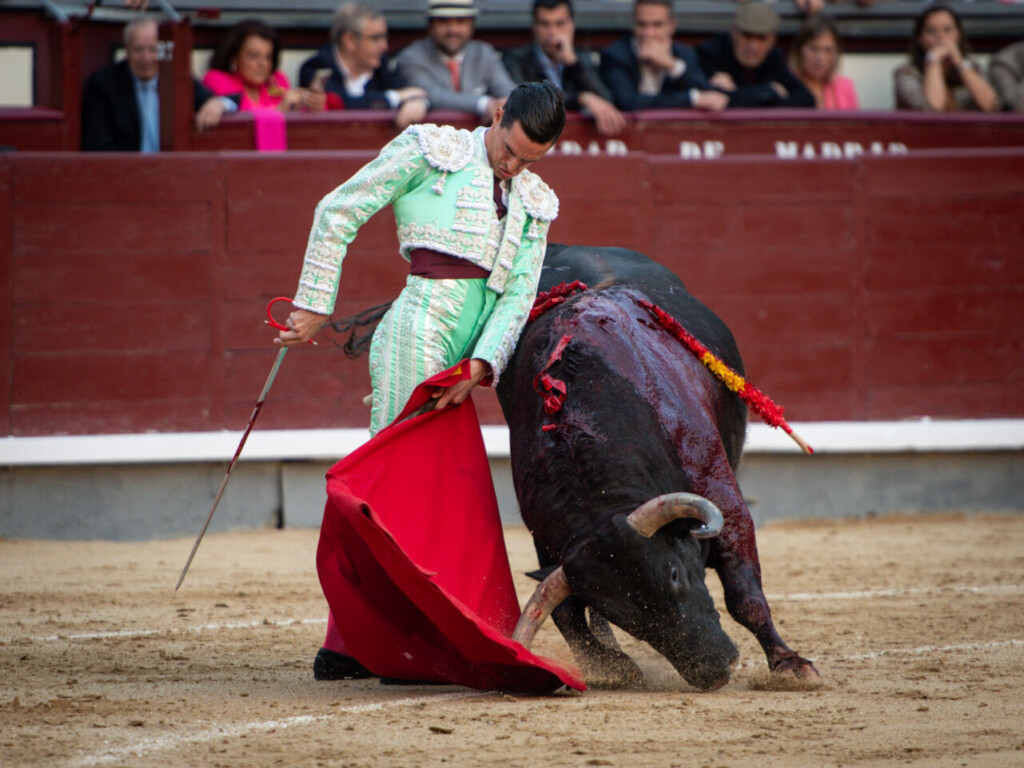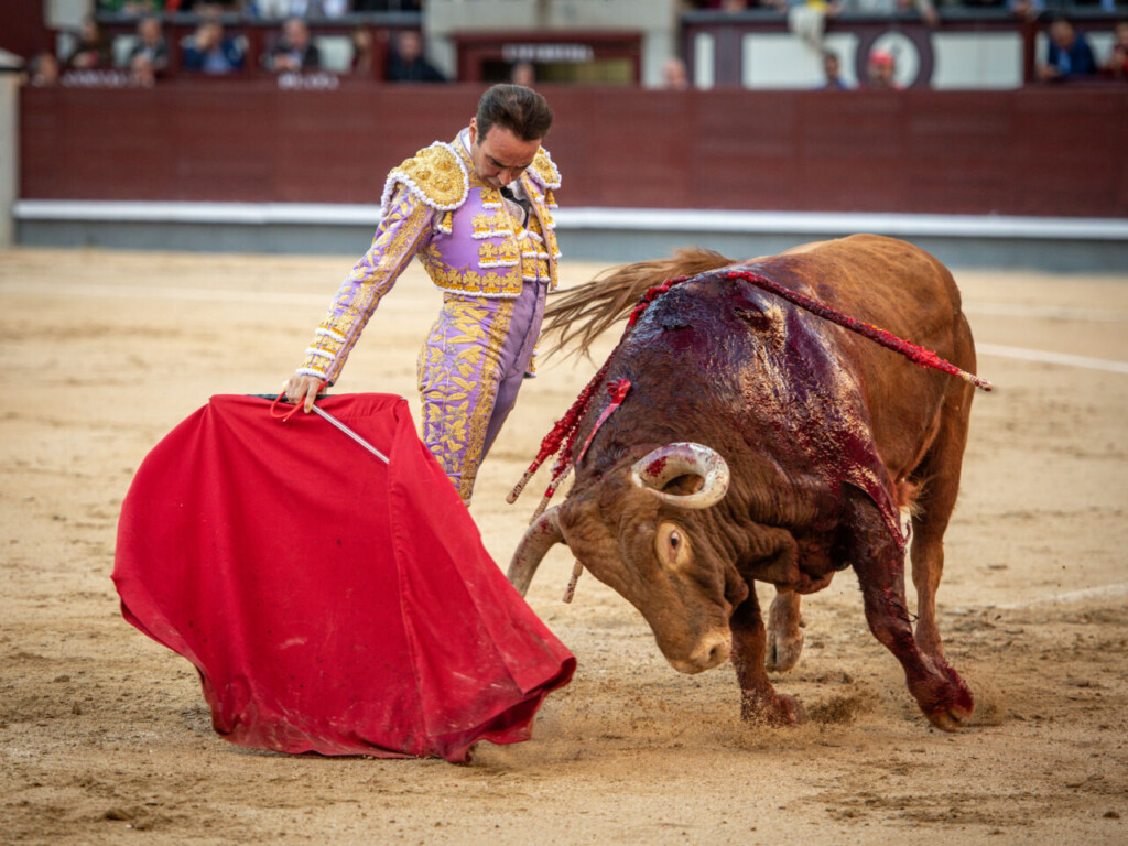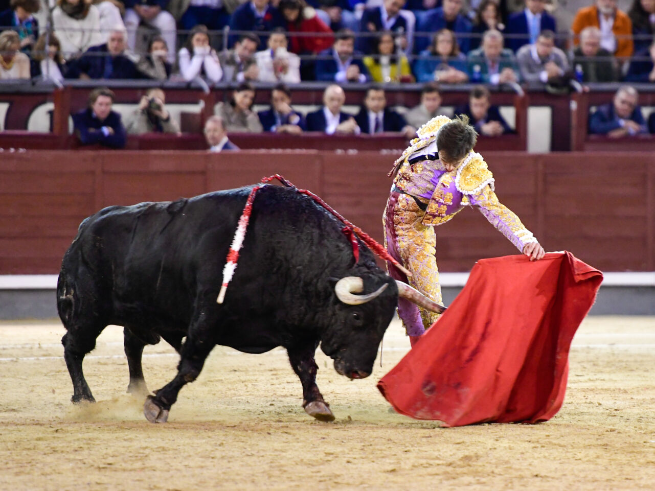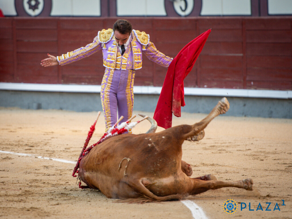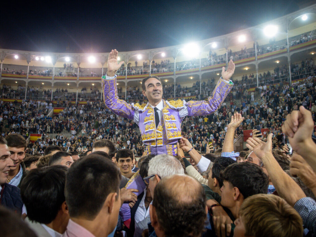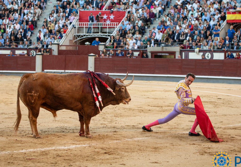 Sortie triomphale d’Enrique Ponce comme il ne pouvait en être autrement et deux oreilles de Requiebro nº 70, colorado ojo de perdiz, listón, bocidorado, de 561 kg né en décembre 2018 de Juan Pedro Domecq. Les despedidas, avec leur note d’émotion pour le torero et pour ceux pour lesquels s’achève, en quelque sorte, une partie de leur vie d’aficionado, n’ont pas toujours le résultat recherché et laissent une pointe d’amertume. Ce fut le cas aujourd’hui car le succès du maestro de Chiva ne correspond pas , en toute rigueur, à l’accomplissement d’une faena exceptionnelle comme celles que Las Ventas sait apprécier et primer en conséquence. Enrique Ponce avait expédié son premier toro de Garcigrande, qui sortait la corne gauche desmochada et ensanglantée à la suite d’un contact avec l’estribo du picador. Le président restait inflexible et ne sortait pas le mouchoir vert et Enrique Ponce devait se résoudre à prendre l’épée. Frustration du torero et du public… Il ne lui restait plus que sortir le grand jeu au 4ème pour laisser un souvenir positif. Ce toro de belles hechuras et bien armé, cornivuelto de presque six ans, passait dans la cape avec un coup de tête final, pour des véroniques meilleures sur la gauche. La première pique n’était pas trop poussée ni appuyée par le picador et la deuxième sans histoire de laquelle le toro sortait en se freinant dans les capotazos et même fléchissait des pattes avant. A son habitude Fernando Sánchez brillait dans une paire de banderilles de poder a poder. Brindis au public debout, applaudissant. Le tanteo du début de faena émaillé de passes de trinchera, révélait une meilleure charge en direction des barrières et un derrote vers l’extérieur. Les premières naturelles isolées ne montraient que la volonté d’Enrique Ponce de forcer les charges avec pour remate une longue passe de poitrine. Venaient ensuite des fioritures pour amorcer une série de la gauche – molinete – ou la terminer – molinete invertido. Il fallait bien terminer par les poncinas avec changement de main et passe complète en rond que le toro acceptait alors qu’il paraissait auparavant sans force ni jus. L’abaniqueo ne manquait pas non plus lorsque sonnait un avis avant que ne soit portée une estocade entière qui roulait le jpdomecq. La demande d’oreille(s) était finalement obtenue et la vuelta al ruedo longuement fêtée par le public généreux et, somme toute, reconnaissant pour les bonheurs que lui avait procuré Enrique Ponce tout au long de sa carrière de 35 ans de matador.