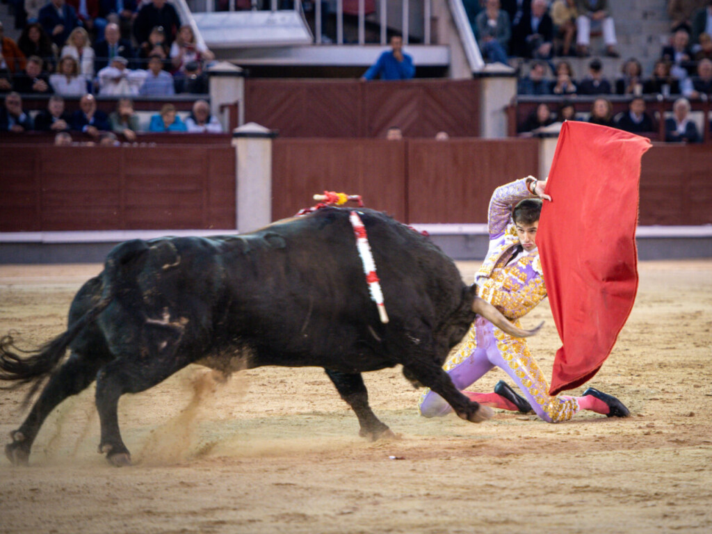 Samuel Navalón confirmait l’alternative avec “Misterioso” de Garcigrande, negro listón de 624 kg né en janvier de 2020. Ce toro, qui sortait presque au pas, était reçu a porta gaïola et les véroniques qui suivaient, bougées, confirmaient le peu de codicia du garcigrande. Le tercio de varas, calamiteux, se soldait au premier assaut par une chute monumentale, le cheval soulevé par le poitrail et au deuxième par des picotazos, rectifiés et répétés, pique rapidement relevée. Le toro était pratiquement arrêté au deuxième tiers. Le bon tanteo de muleta, passes hautes et passe de poitrine animait le toro qui était “cité” de loin, au centre de la piste, pour une série de la droite, sans trop de vitesse de charge dont Samuel s’accomodait. Sur la gauche, cette charge n’était pas aussi claire mais le jeune Valencien, originaire de Ayora, élève de l’Ecole taurine d’Albacete (Castilla La Mancha), restait ferme, se croisant. Il parvenait à lier quelques derechazos mais une série était de trop, sans l’intensité des précedentes et les temps de réponse du toro, faisaient que sonnait un avis et un deuxième après un pinchazo suivi d’une entière, desprendida, tendida et deux descabellos. C’est au 6ème que Samuel Navalón forçait un succès mérité pour son entrega face à un toro peu piqué, sans fijeza au deuxième tiers et qui se traînait derrière la muleta. Après le brindis au public, c’est par un cite lointain et farol à genoux que Samuel entamait sa faena. Le calamocheo des premières charges de toro ne l’intimait pas, il “templait”certaines passes à droite. Peu à peu, les naturelles, longues “courant” la main au máximum élevaient le niveau du trasteo. À l’origine d’une naturelle survenait la cogida – sans dommage – et d’autres naturelles suivaient plus courtes et moins finies car le toro avait réduit sa charge et se retournait en fins de passes. Desplante. Pour terminer des bernadinas sans l’épée, serrées et risquées. Estoconazo. Un oreille.