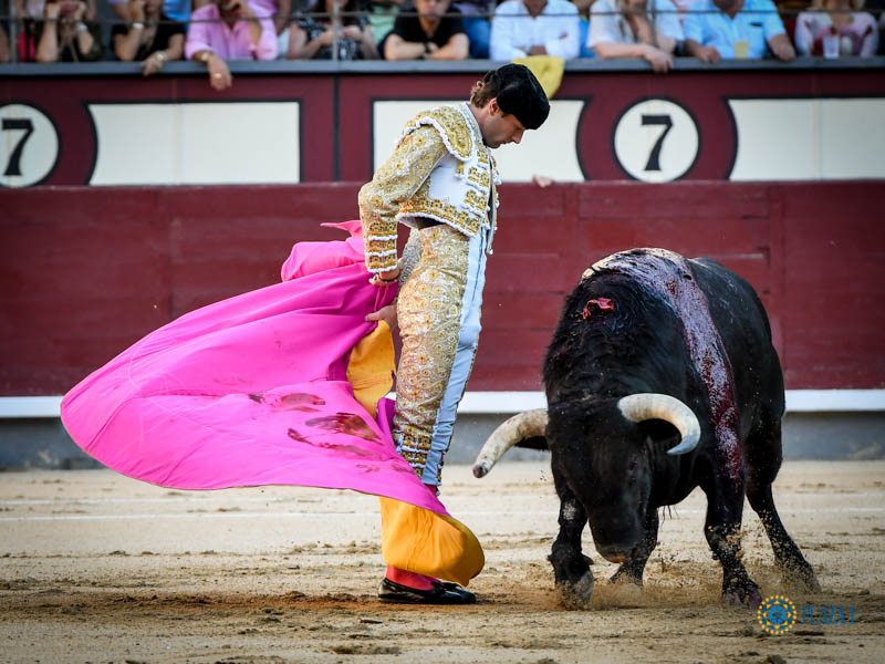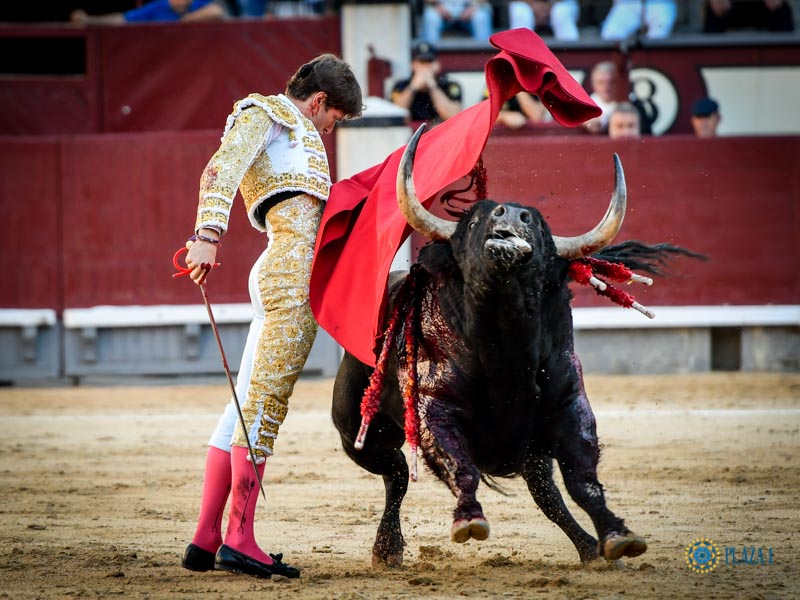 Juan Ortega sans vraiment signer de faenas complètes, gratifiait ses partisans, et les autres, de pincées de toreo élégant, presque délicat face aux brutes qui lui étaient opposées, en mouvement dans l’inconstance de leurs charges. Des doblones au 3ème et surtout, le sommet de la torería, le tanteo au 6ème, conduisant au pas, passe après passe, le toro vers le centre de la piste. Là, le toro s’arrêtait topón et il n’y avait plus rien à faire. Un bajonazo ternissait la prestation au 3ème et un pinchazo hondo suivi de deux descabellos mettaient fin à cette lamentable corrida.