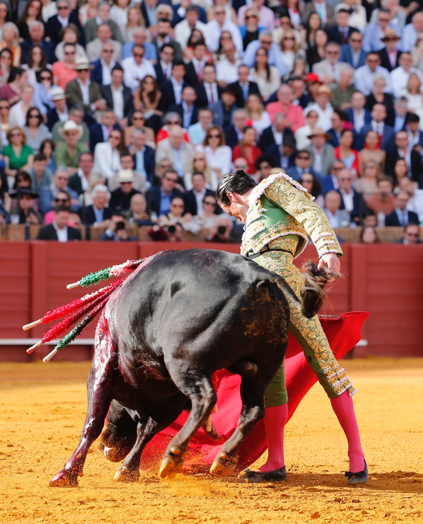 SÉVILLE 20 avril 2024 - Pour Andrés Roca Rey la Porte du Prince de la Maestranza et une oreille pour Pablo Aguado.