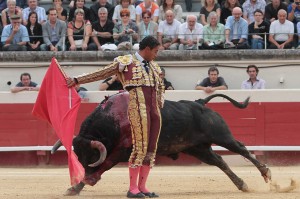 - Soit, si le toro s'élance seul, il laisse la muleta inerte derrière son profil droit.