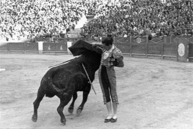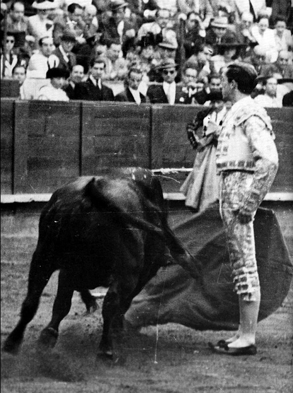 Les estatuaires étaient aussi une entrée classique de faena chez Manolete. Preuve est donnée que cet échantillonnage de passes n’était pas aussi court que l’on semblait le dire surtout si l’on ajoutait toutes les passes de poder, celles par lesquelles le torero domine l’animal, le retient à sa merci dans les doblones ou les pases ayudados par le bas, ou bien le fleuri et efficace abaniqueo avant de fixer le toro pour la mise à mort. Tout ce registre de passes et suertes traduisent l’injustice dont était victime Manolete, de ses détracteurs de mauvaise foi qui lui collaient l’image de torero corto… En supposant que cela fut vrai, Manolete compensait ses «lacunes» par une sérénité, un aguante dans l’exécution des passes et une personnalité qui le distinguaient de tous les autres toreros de son époque. Sa vaillance, son respect pour le public, sa générosité ne le faisaient reculer devant aucun toro au prix de la trentaine de cogidas reçues au cours de sa brève carrière jusqu’à l’ultime, la fatale, celle de Linares.