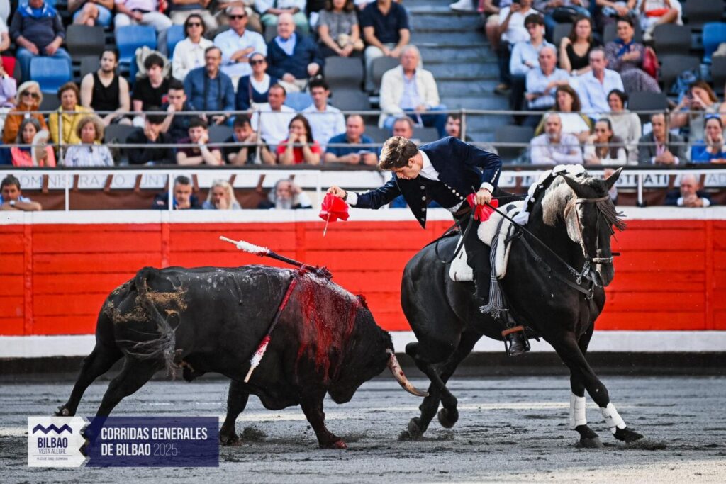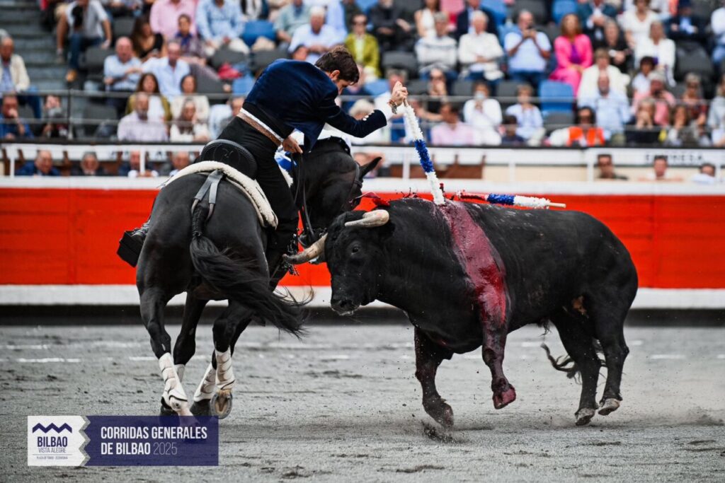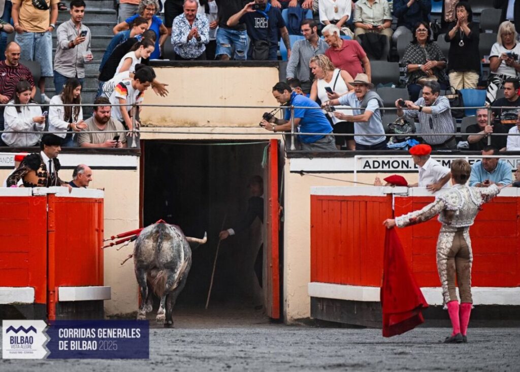 Bilbao 20 août2025 – 3ème de feria – Premier indulto de l’histoire des arènes de Vista Alegre. “Tapaboca-26” de La Quinta gracié après une bonne faena de Borja Jiménez, triomphateur de la corrida mixte.