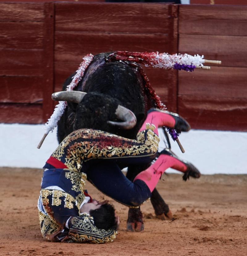 Le premier montrait néanmoins qu’il est le plus expérimenté et affrontait brillamment le novillo sorti 4ème, le seul brave du lot qu’il fallait soumettre et dont il fallait endiguer les charges, pour couper une oreille après une faena variée et artistique. Leo Valadez ne rencontrait aucun novillo pour développer son toreo à la cape –joli quite par zapopinas – aux banderilles et à la muleta devant des novillos éteints. De plus il était malheureux à l’épée. Antonio Catalán « Toñete » était brutalement soulevé en accueillant son premier novillo par des statuaires et chutait dangereusement (traumatisme cervical). Malgré cela il réalisait une faena reposée profitant au maximum du peu de charge de ses opposants, bien placé et maniant avec douceur la muleta.